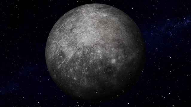 Realistic Earth Planet, rotating on its axis in space against the background of the Milky Way star sky. Astronomy and science concept. Continents and oceans. Elements of image furnished by NASA