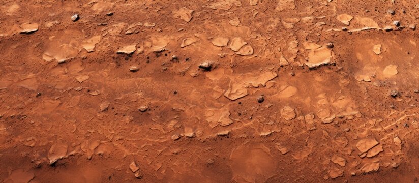 A detailed view of the Martian soil shows a close-up of a dirt surface scattered with rocks. The prominent rocks stand out against the reddish-brown soil.