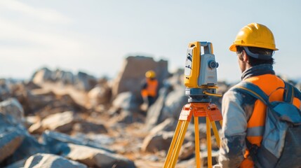 Astronaut collecting martian rock sample on red planet surface with reflective visor