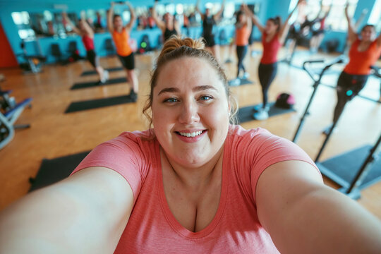 Generative AI illustration of body Positive Woman Taking Selfie in Gym Generative AI