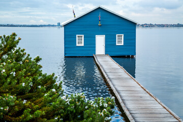 Snowflakes on blue wooden planks for christmas