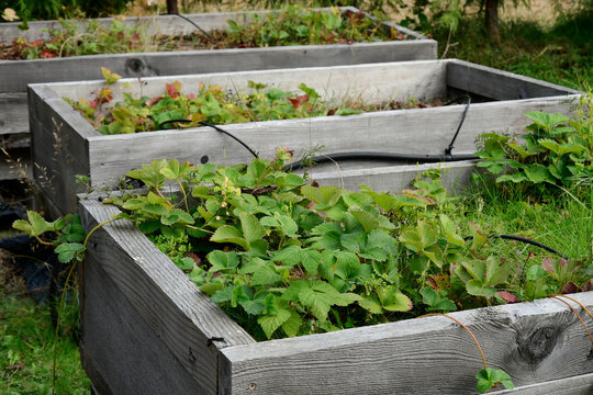 Group of Wooden Boxes Filled With Plants