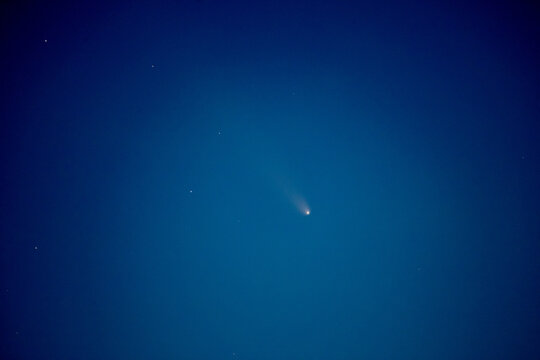 Glowing blue comet speeding through the vast expanse of space, leaving a trail of light, on transparent background
