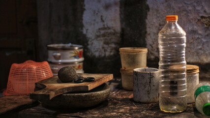 Set of usual plastic bottles from a household - pollution concept