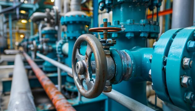 Closeup of a large industrial valve in a factory