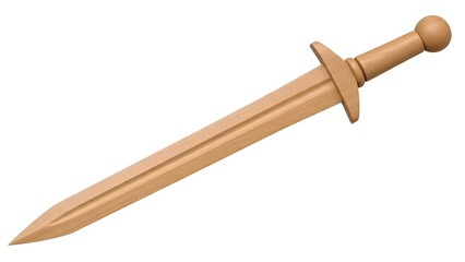 A wooden toy sword with a rounded handle and pointed blade on transparent background