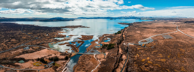 Aerial view of Thingvellir National Park, where two tectonic plates meet