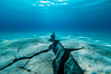 An abstract graphic representing an earthquake with seismic waves and a crack in the ground.