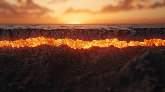 A stunning photo of volcanic activity along a tectonic plate boundary, with eruptions and lava flows.