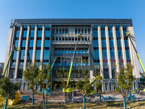 Construction Workers Installing Glass Windows on a Building