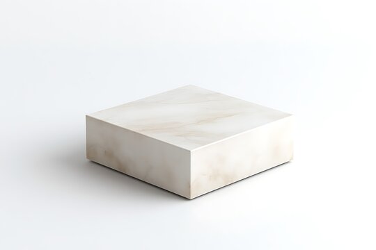 Marble Textured Cube, Isometric Stone Box on White Background, Minimalist Geometry Style