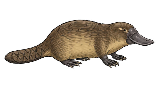 Platypus - Ornithorhynchus anatinus, duck-billed platypus, semiaquatic egg-laying mammal endemic to eastern Australia, including Tasmania. Strange water marsupial with duck beak and flat fin tail