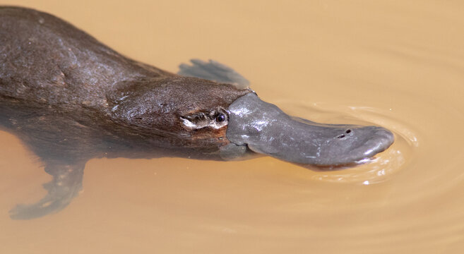 Burnie, Tasmania, Australia: March 2019: Platypus sviming in the river.