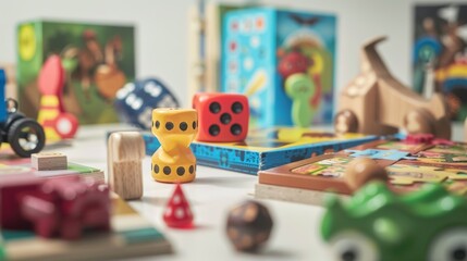 Floating golden dice and chips create a dynamic gaming atmosphere in a lively casino setting