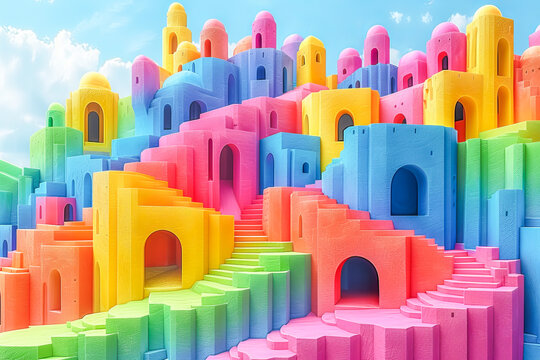 The word "rainbow" is made of plasticine or modelling clay. Multicolored letters. Isolated on white.