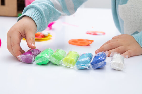Childrens hands play dough for children's creativity. Board game for the development of fine motor skills