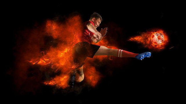 One caucasian soccer player man