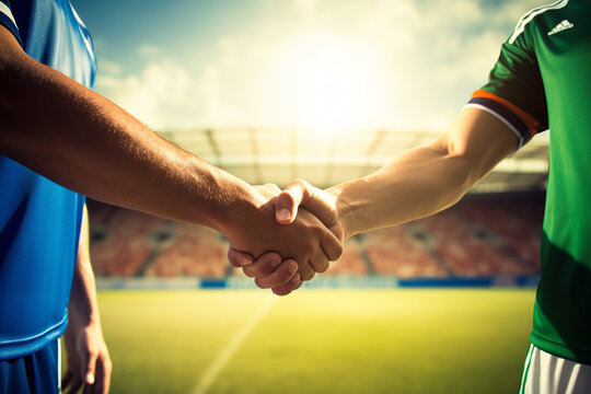 Soccer players shaking hands after a competitive match  - stock photography concepts