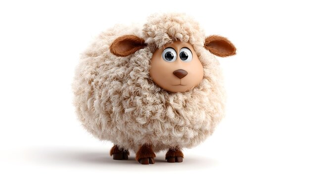 Happy Cute Sheep Cartoon Character Isolated on White Background in 3D Style