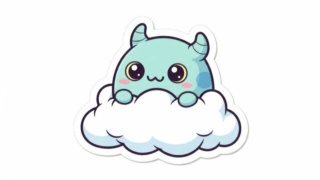 Friendly Monster Peeking Behind Cloud Adorable Kawaii Style Character