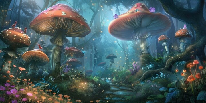 Enjoying a whimsical tea party surrounded by enchanting mushrooms and greenery