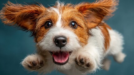 Playful puppies amongst colorful party ribbons celebrating playtime