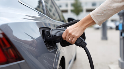 Eco-friendly car charging in scenic coastal road virtual overlay