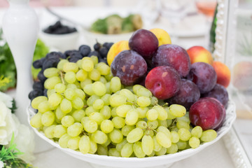 Fruit plate, grapes and plums