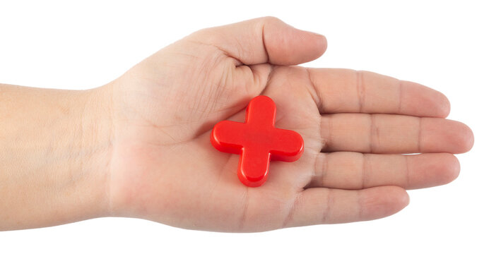 plus sign held with one hand. Space for text.