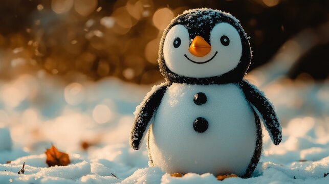 Adorable Tiny Penguin Plush Sitting on Soft Pastel Background