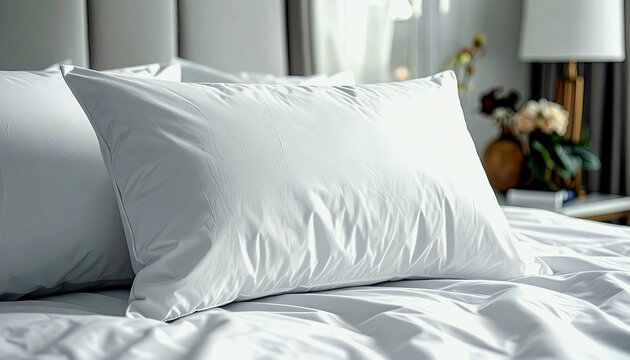 Close-up of two plush white pillows resting on a crisp white duvet cover, creating a serene and inviting bedroom scene.