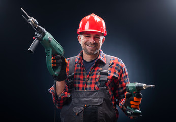 Male worker with an electric dril