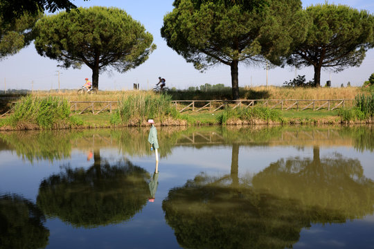 Rosolina, Veneto, Italy: landscape of the Adige river mouth in the nature reserve Po river delta park