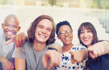 We need you. Portrait of a group of people pointing their fingers forward together.