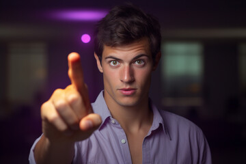 handsome young man, pointing his index finger forward