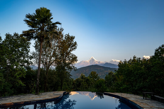 Breathtaking Sunrise Over Pokhara Valley with Annapurna and Machapuchare Mountain Range from Sarangkot, Nepal