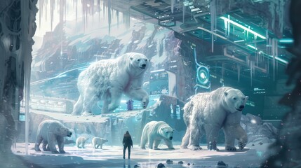Image Of A Person With Polar Bears In A Futuristic Habitat