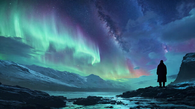Mesmerizing aurora borealis illuminates starry arctic night