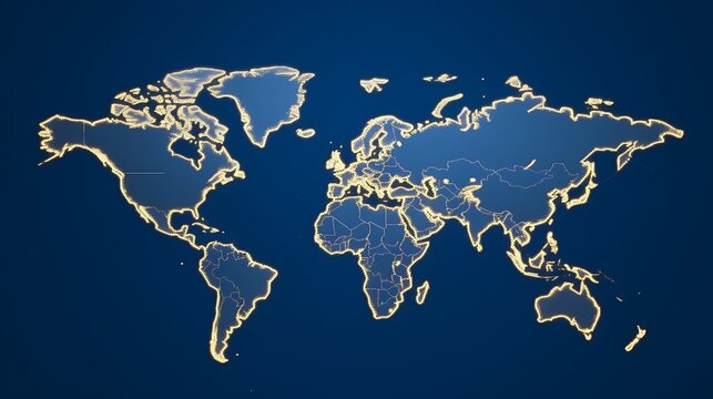 Illuminated World Map Showing Country Borders