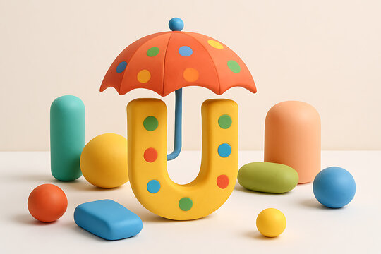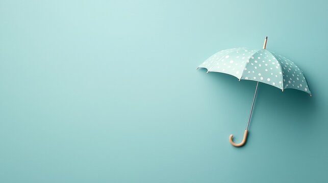 whimsical polka-dot umbrella pops against a bright turquoise ombre background, exuding carefree playfulness in a sun-kissed summer adventure
