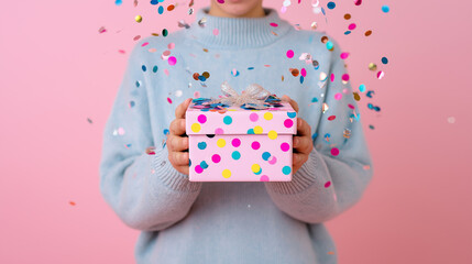 Beautifully wrapped gift with colorful polka dots and tags