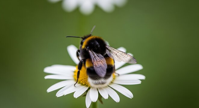 Bee pollinating flowers in a lush garden macro shot highly detailed