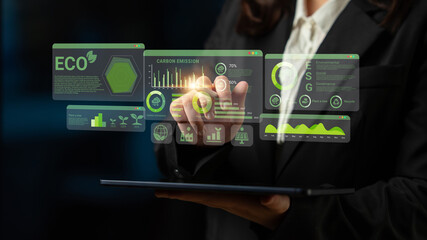 ESG and environmental data dashboard with charts, graphs, and sustainability statistics for eco-friendly strategy Parse