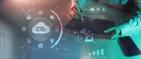 Carbon Emission Monitoring and Sustainable Energy Management ECO Technology concept.