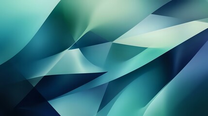 Geometric abstract background with sharp shapes in cool tones of blue and green, combined with smooth gradients for a modern, digital look
