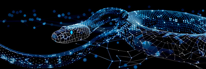 Futuristic digital interface with glowing circuitry and polygons