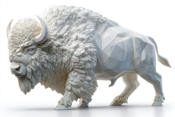 Lowpoly white bison 3d rendering digital art wildlife animal sculpture polygonal model