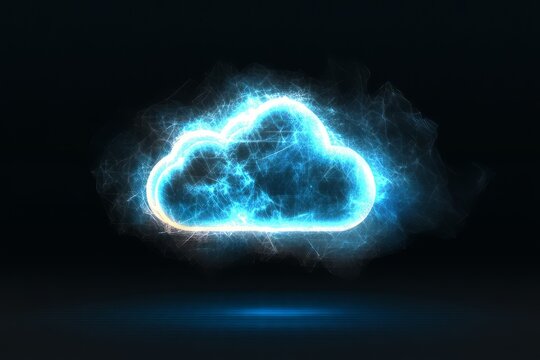 Creative glowing polygonal cloud on blue background. Cloud computing and data concept. 3D Rendering.