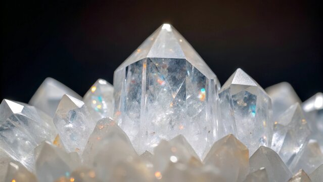 Vibrant, multifaceted crystal cluster with iridescent light play and sharp edges