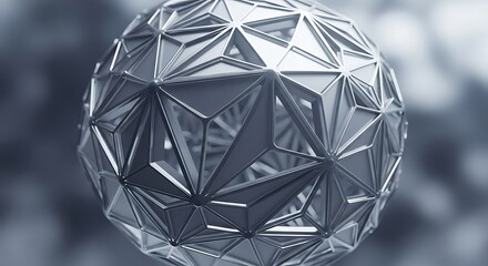 Metallic soccer ball on white background. Shiny chrome football isolated. Sports theme concept for modern design. 3D render of glossy silver sphere with polygonal panels.
